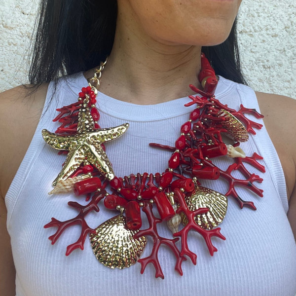 Collana con coralli e forme oro